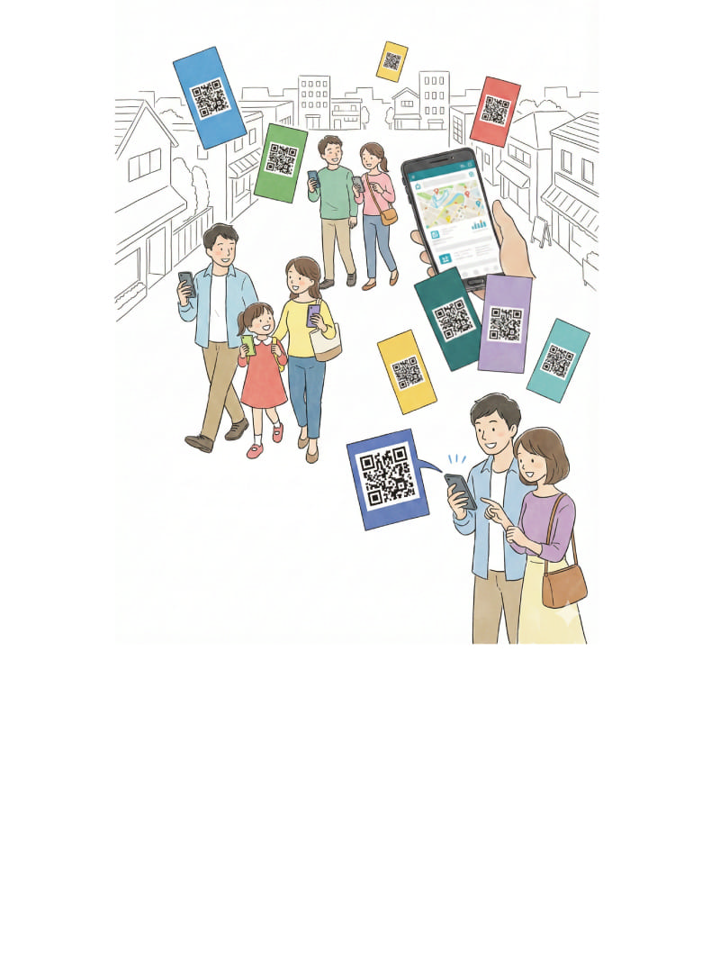 アプリ不要。誰でも簡単にアクセスできるQRコードを入り口に、地域の活性化、地域DXを同時に叶える「しかけ」を提供しています。
