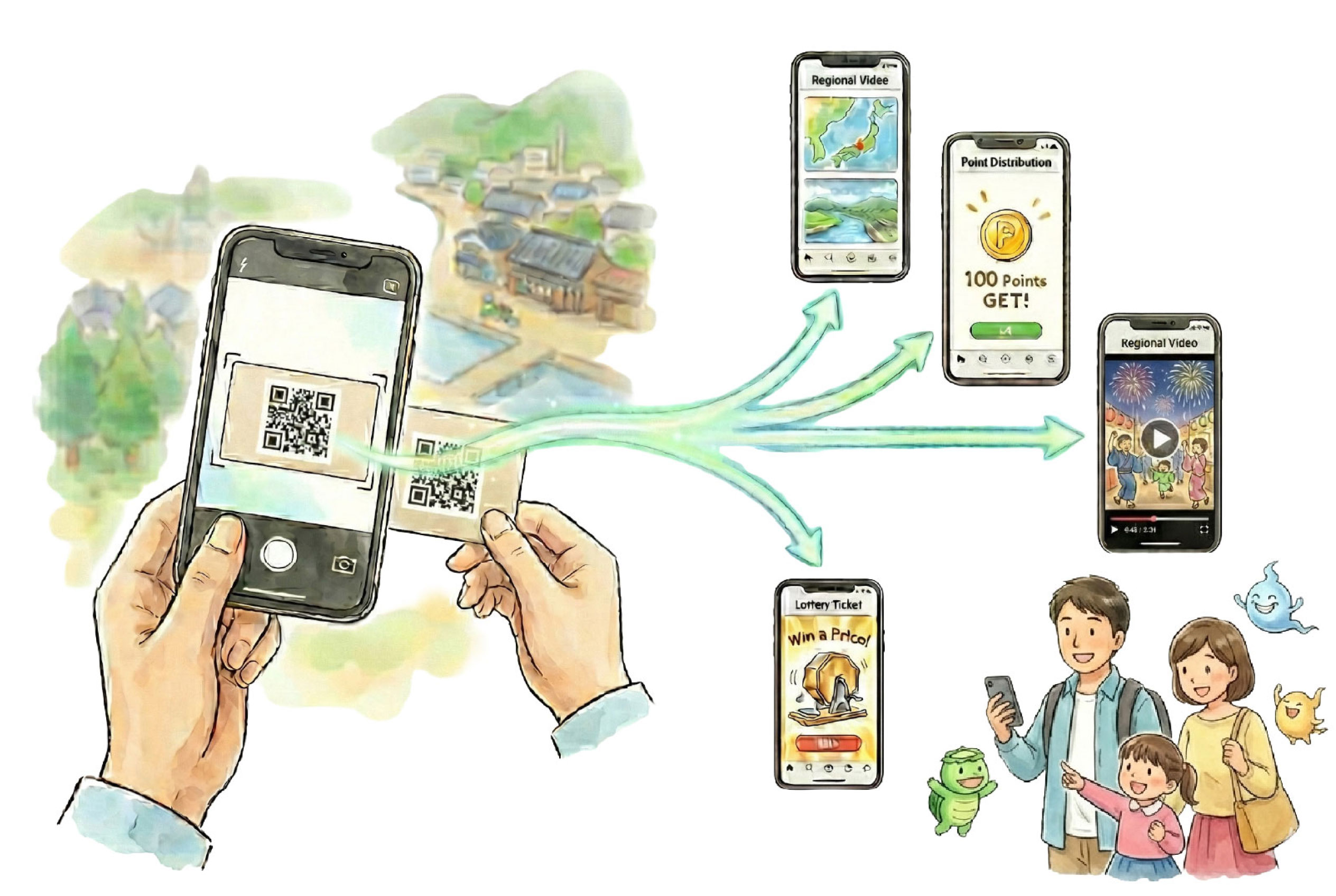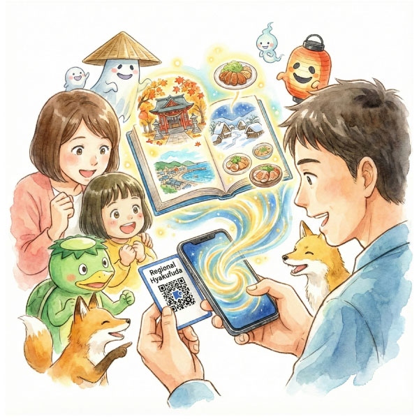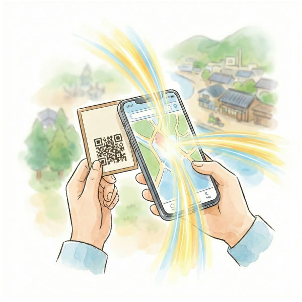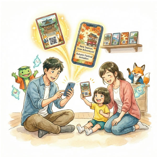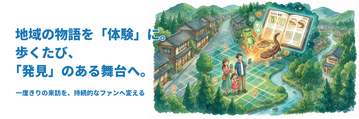 特典やスタンプ機能を込めたQRコードを、カード等の「モノ」として配布。集める喜びがスマホ内の図鑑やランクと連動し、周遊を「冒険」や「物語」に変えます。世界観に合わせた演出で没入感を高め、観光客を地域の熱心なファンへと育てる仕組みです。