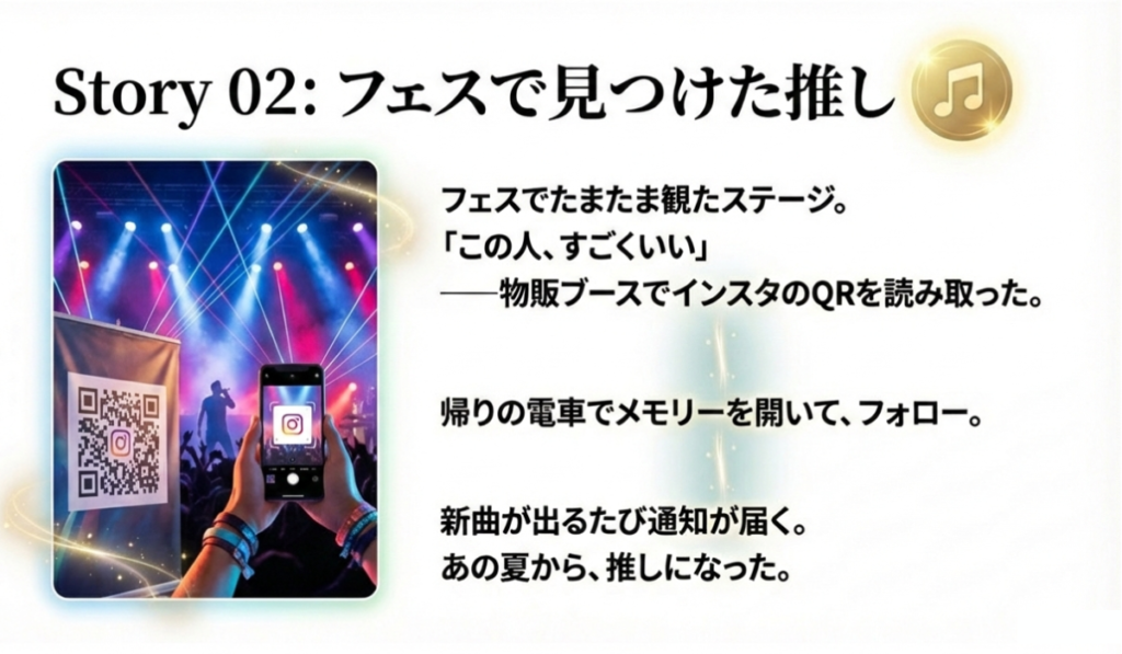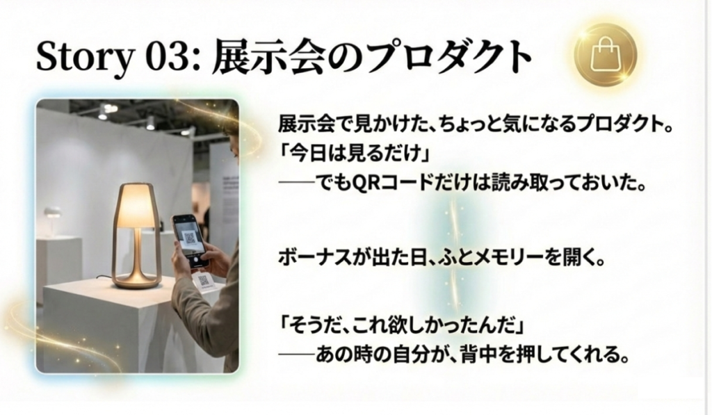 「いいな」の瞬間で、QRコードを読み取るだけ。そのままスマホに残せます。