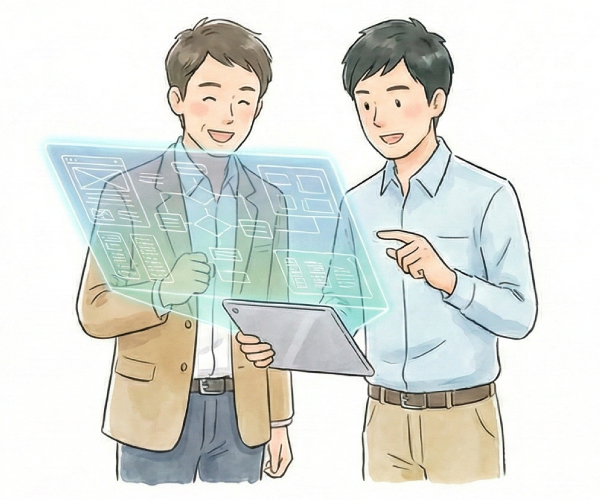 「夢現システムズ」は、かけはし創業者の「お客様の夢を現実にしたい」という想いから始まった、かけはしの技術の源流です。 既存のパッケージでは届かない、お客様固有のこだわりや複雑なロジックを完全再現します。ITの知識や詳細な仕様書は不要です。理想を語るだけで、現場の文化に溶け込み、使う人が快適に感じる唯一無二のシステムを構築します。